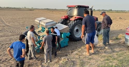Los agricultores a gran escala en Uzbekistán utilizan nuestra máquina integrada de fertilización y sembradora de precisión inteligente con grada rotativa YongXiang para sembrar arroz en seco, logrando rastrillar, fertilizar, excavar, sembrar, cubrir y compactar de una sola vez con excelentes resultados.
